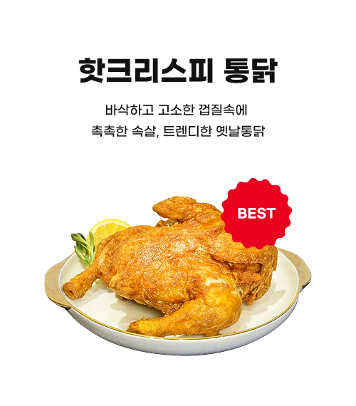 치킨본부 시그니처 메뉴인핫크리스피 통닭 및 핫후라이드 치킨이